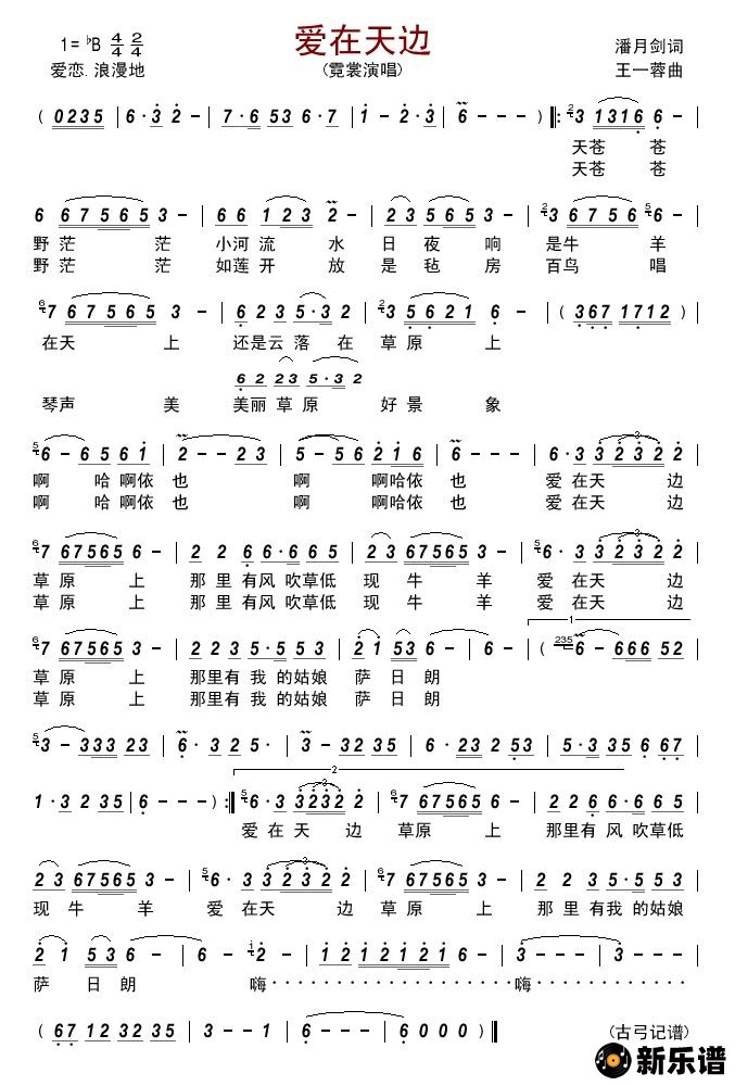 《爱在天边》简谱 霓裳-古弓制谱