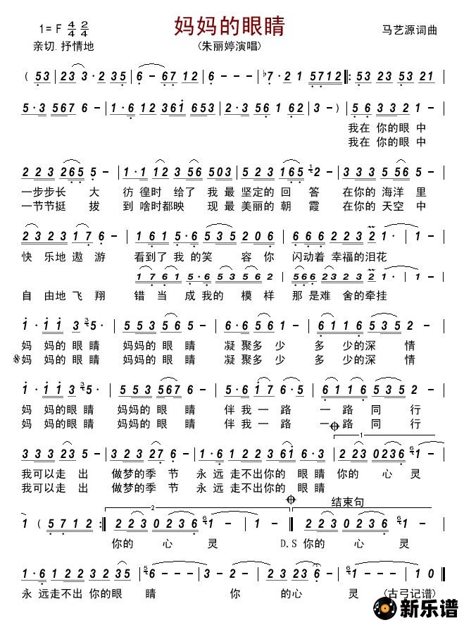 《妈妈的眼睛》简谱 朱丽婷-古弓制谱