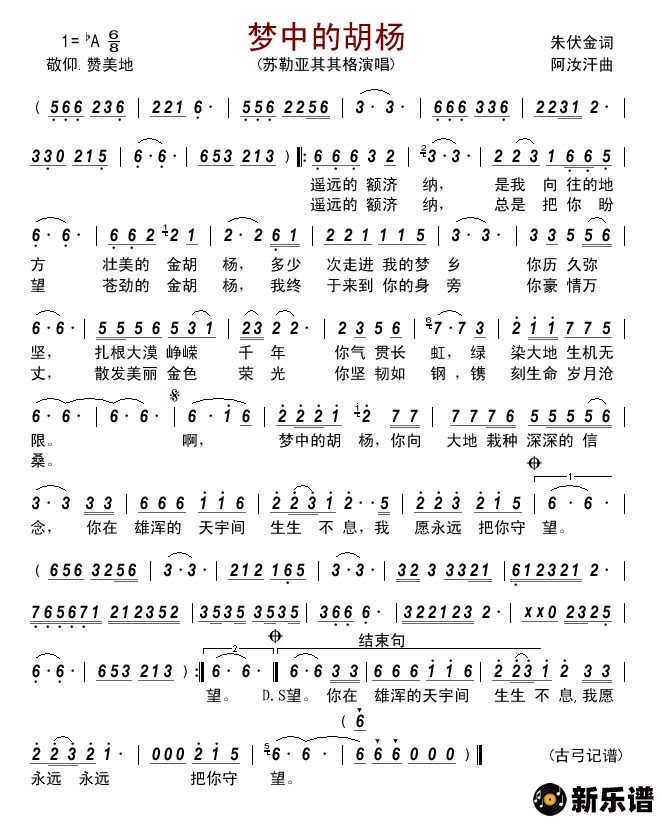 《梦中的胡杨》简谱 苏勒亚其其格-古弓制谱