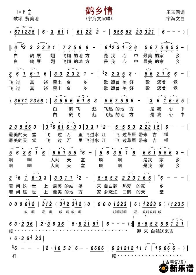 《鹤乡情》简谱 宇海文-古弓制谱