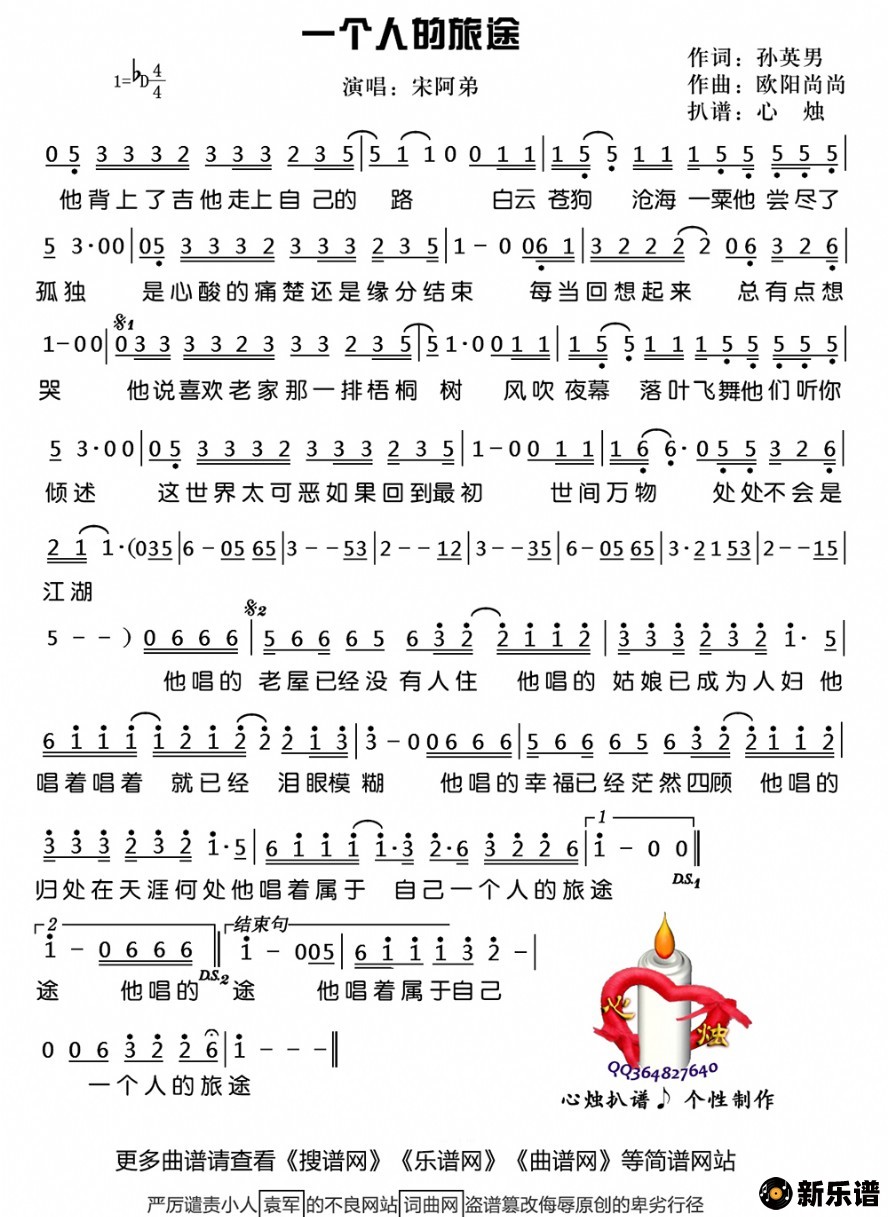《一个人的旅途》简谱 宋阿弟-心烛制谱