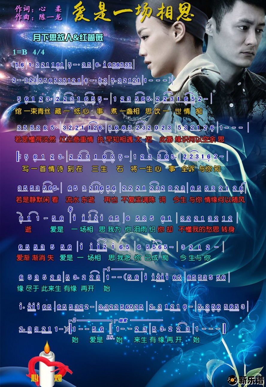 《爱是一场相思》简谱 月下思故人、红蔷薇-心烛制谱