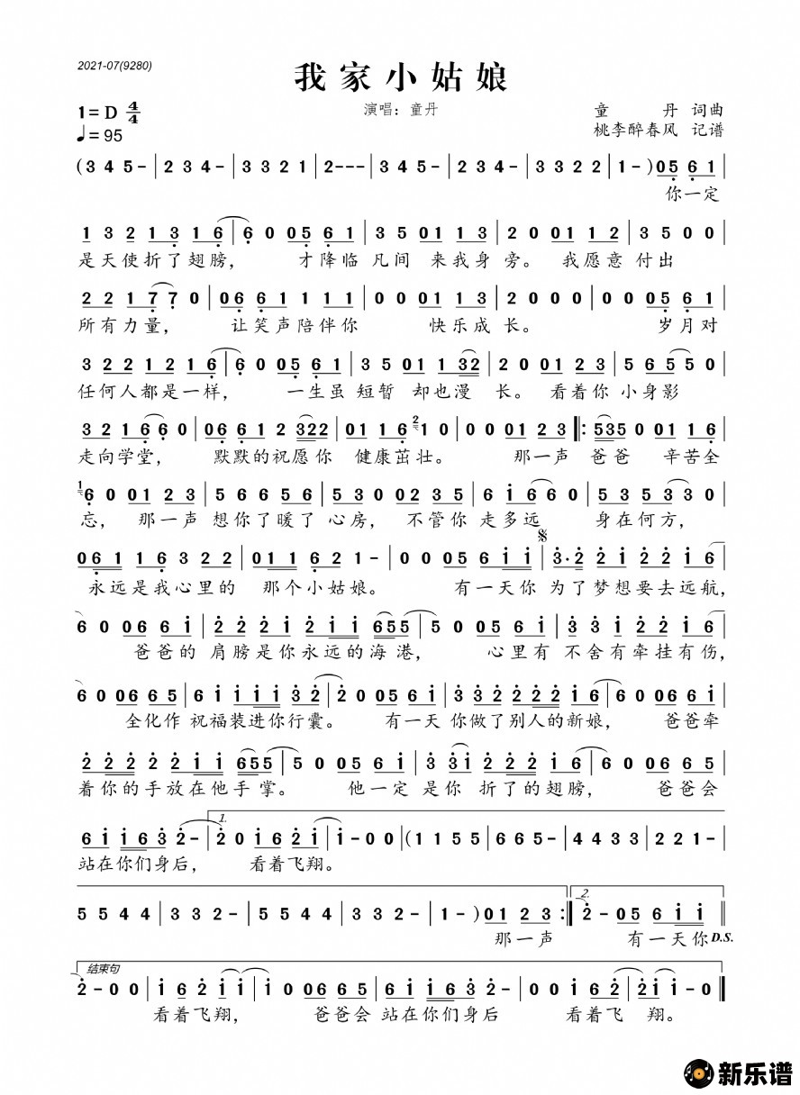 《我家小姑娘》简谱 童丹-桃李醉春风制谱