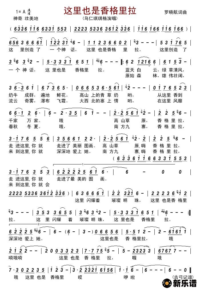 《这里也是香格里拉》简谱 乌仁琪琪格-古弓制谱