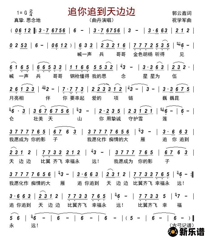 曲丹演唱的追你追到天边边歌词,追你追到天边边简谱.