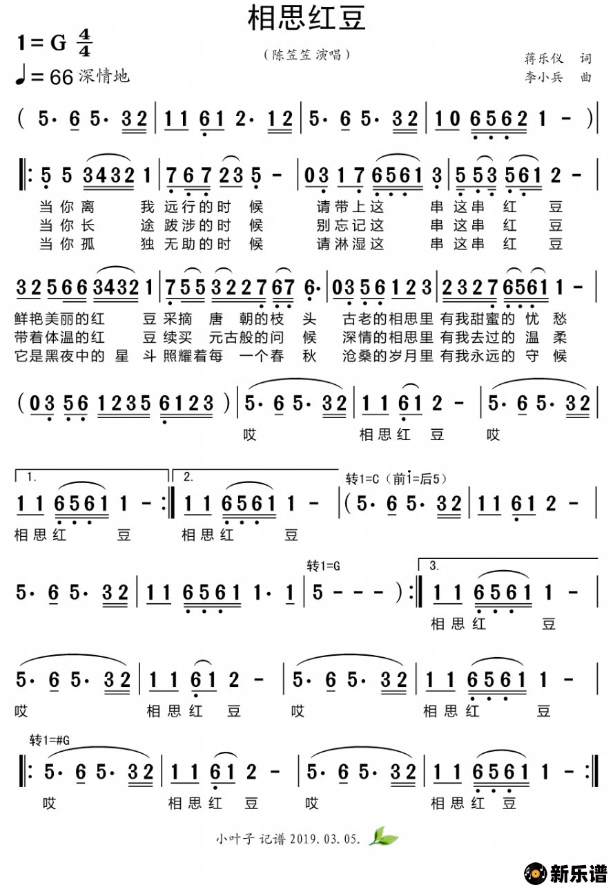 《相思红豆》简谱 陈笠笠-小叶子制谱