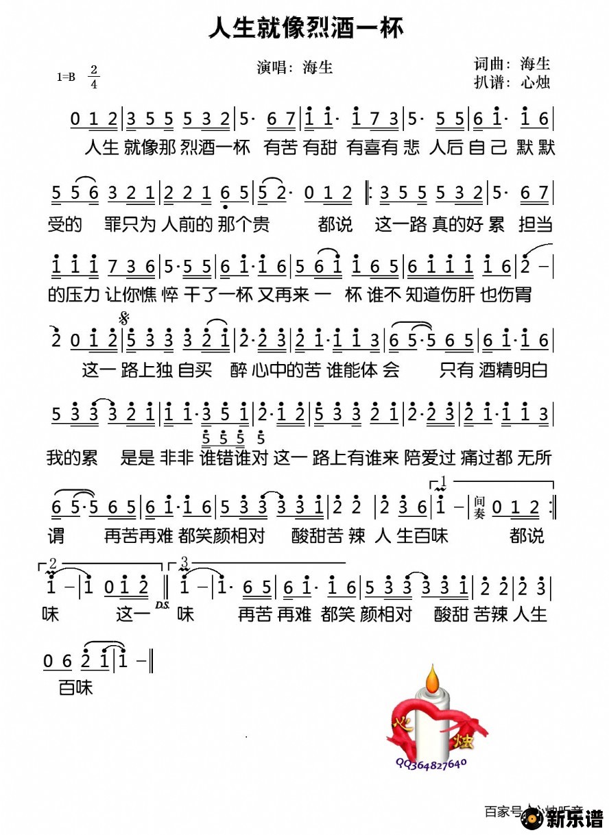 《人生就像烈酒一杯》简谱 海生-心烛制谱