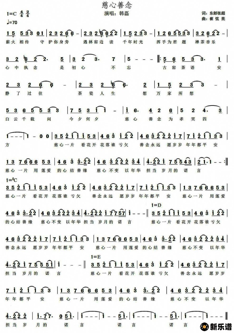 《慈心善念》简谱 韩磊-小叶子制谱