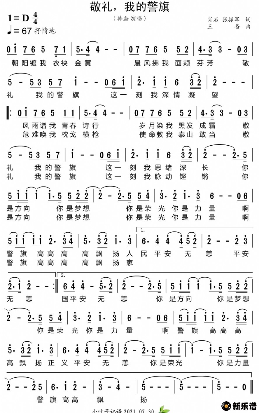《敬礼,我的警旗》简谱 韩磊-小叶子制谱