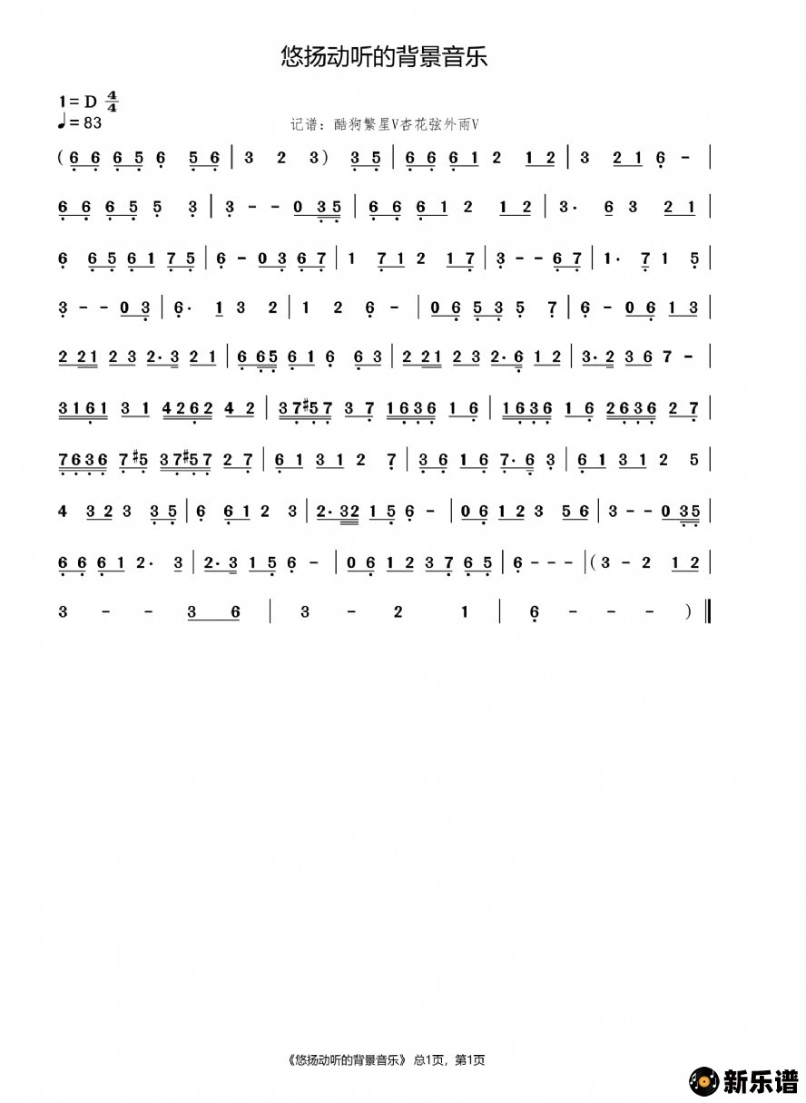 《悠扬动听的背景音乐》简谱 -杏花弦外雨制谱