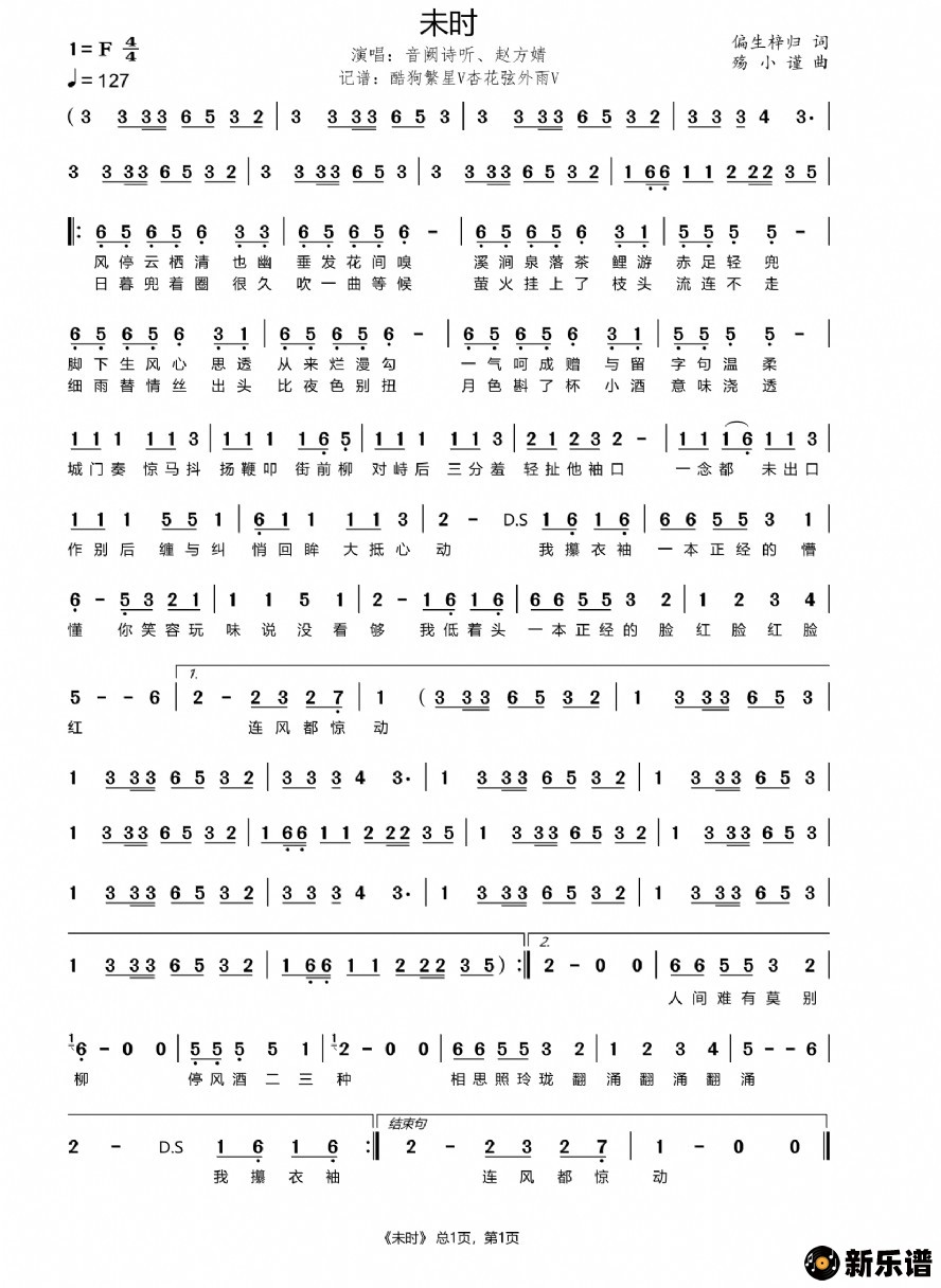音阙诗听、赵方婧演唱的未时歌词,未时简谱.