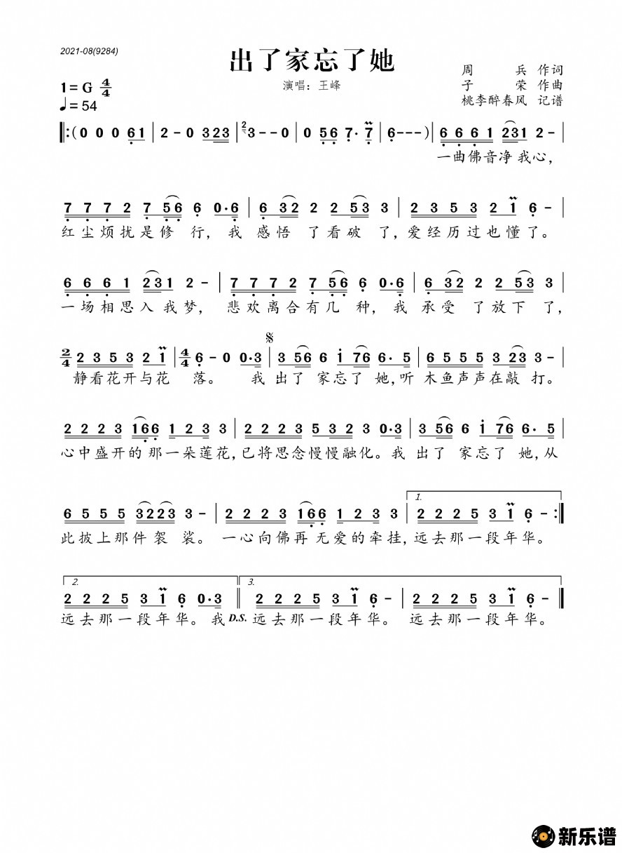 《出了家忘了她》简谱 王峰-桃李醉春风制谱