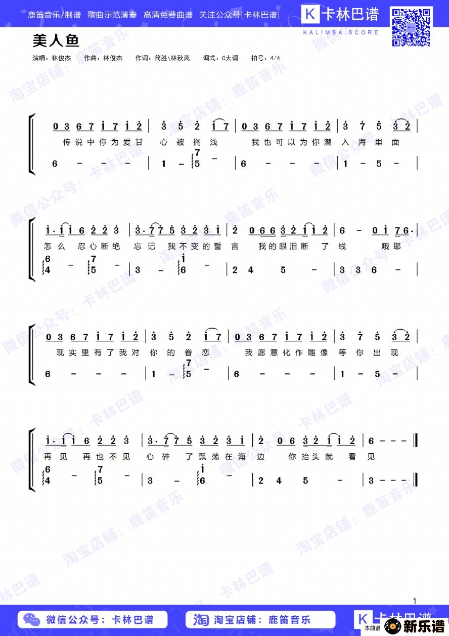 《美人鱼》简谱 林俊杰-简谱卡农制谱