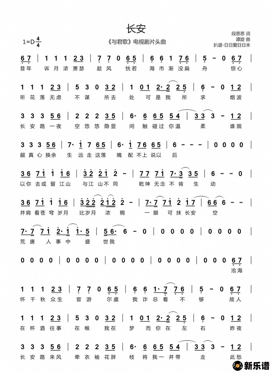 《长安(《与君歌》电视剧片头曲)》简谱 摩登兄弟刘宇宁-日日爱日日未制谱