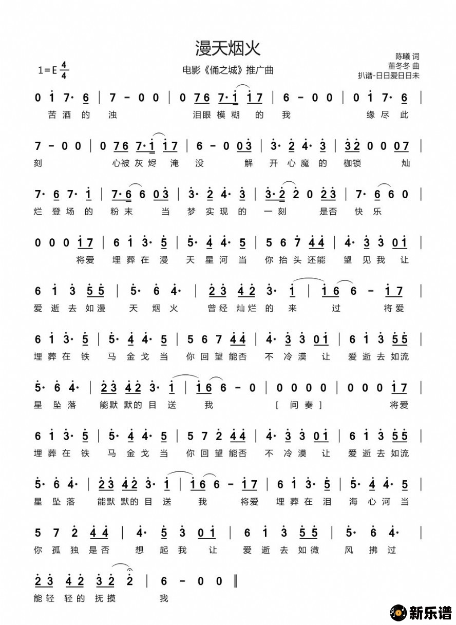《漫天烟火(电影《俑之城》推广曲)》简谱 叶炫清-日日爱日日未制谱