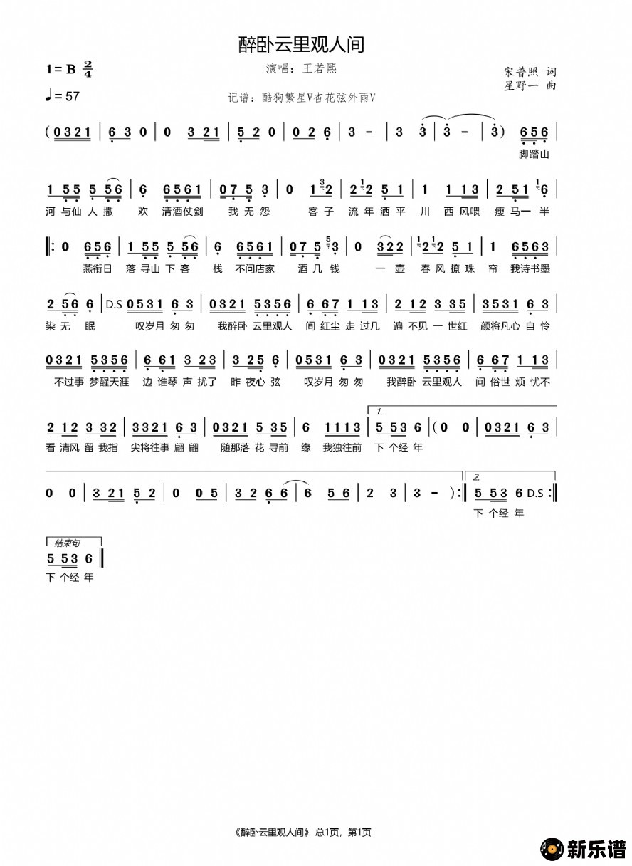醉卧云里观人间王若熙 王若熙演唱的醉卧云里观人间歌词,醉卧云里观人间简谱. 脚踏山河与仙人撒欢清酒仗剑我无怨客子流年洒平川西风喂瘦马一半燕衔日落寻山下客栈不问店家酒几钱一壶春风撩珠帘我诗书墨染无眠叹岁月匆匆我醉卧云里观人间红尘走过几遍不见一世红颜将凡心自怜不过事梦醒天涯边谁琴声扰了昨夜心弦叹岁月匆匆我醉卧云里观人间俗世烦忧不看清风留我指尖将往事翩翩随那落花寻前缘我独往前下个经年燕衔日落寻山下客栈不问店家酒几钱一壶春风撩珠帘我诗书墨染无眠叹岁月匆匆我醉卧云里观人间红尘走过几遍不见一世红颜将凡心自怜不过事梦醒天涯边谁琴声扰了昨夜心弦叹岁月匆匆我醉卧云里观人间俗世烦忧不看清风留我指尖将往事翩翩随那落花寻前缘我独往前下个经年叹岁月匆匆我醉卧云里观人间红尘走过几遍不见一世红颜将凡心自怜不过事梦醒天涯边谁琴声扰了昨夜心弦叹岁月匆匆我醉卧云里观人间俗世烦忧不看清风留我指尖将往事翩翩随那落花寻前缘我独往前下个经年 此简谱由新乐谱会员 杏花弦外雨 上传