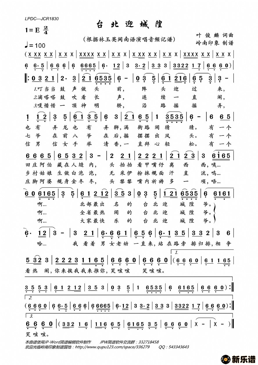 《台北迎城隍》简谱 林玉英-岭南印象制谱