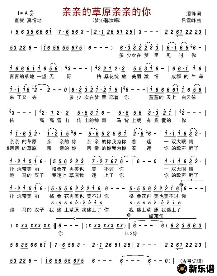 梦沁馨演唱的亲亲的草原亲亲的你歌词,亲亲的草原亲亲的你简谱.
