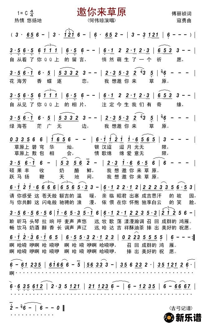 《邀你来草原》简谱 何伟琼-古弓制谱