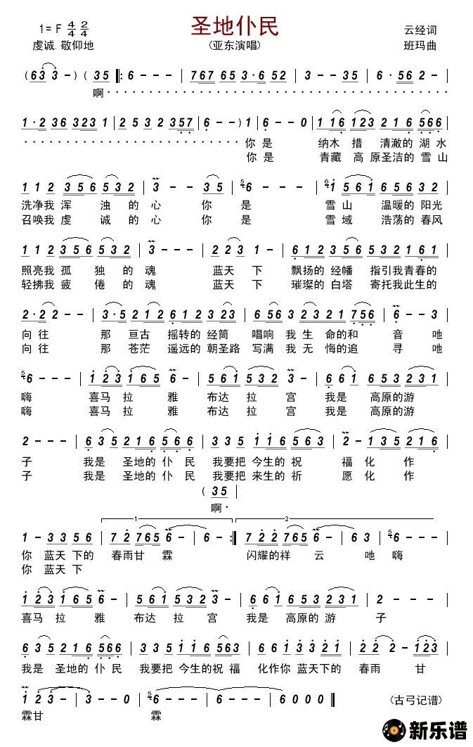 亚东演唱的圣地仆民歌词,圣地仆民简谱.