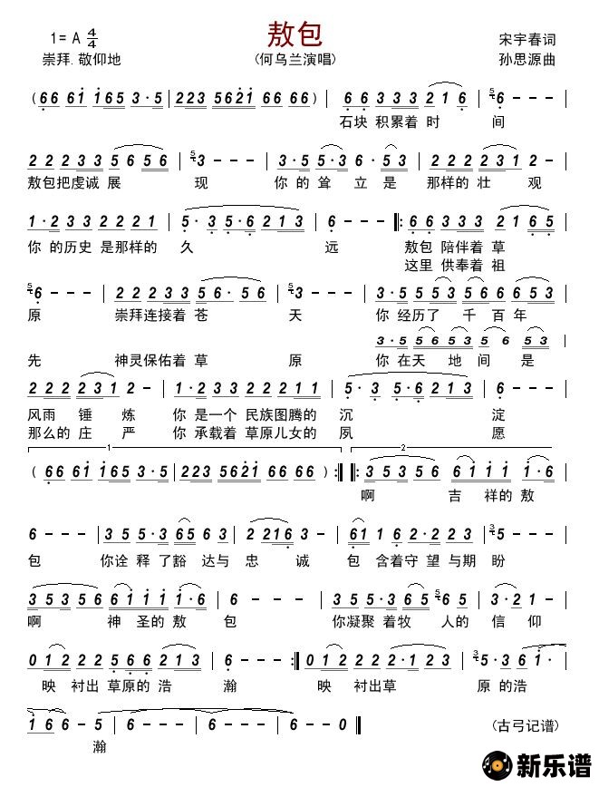 《敖包》简谱 何乌兰-古弓制谱