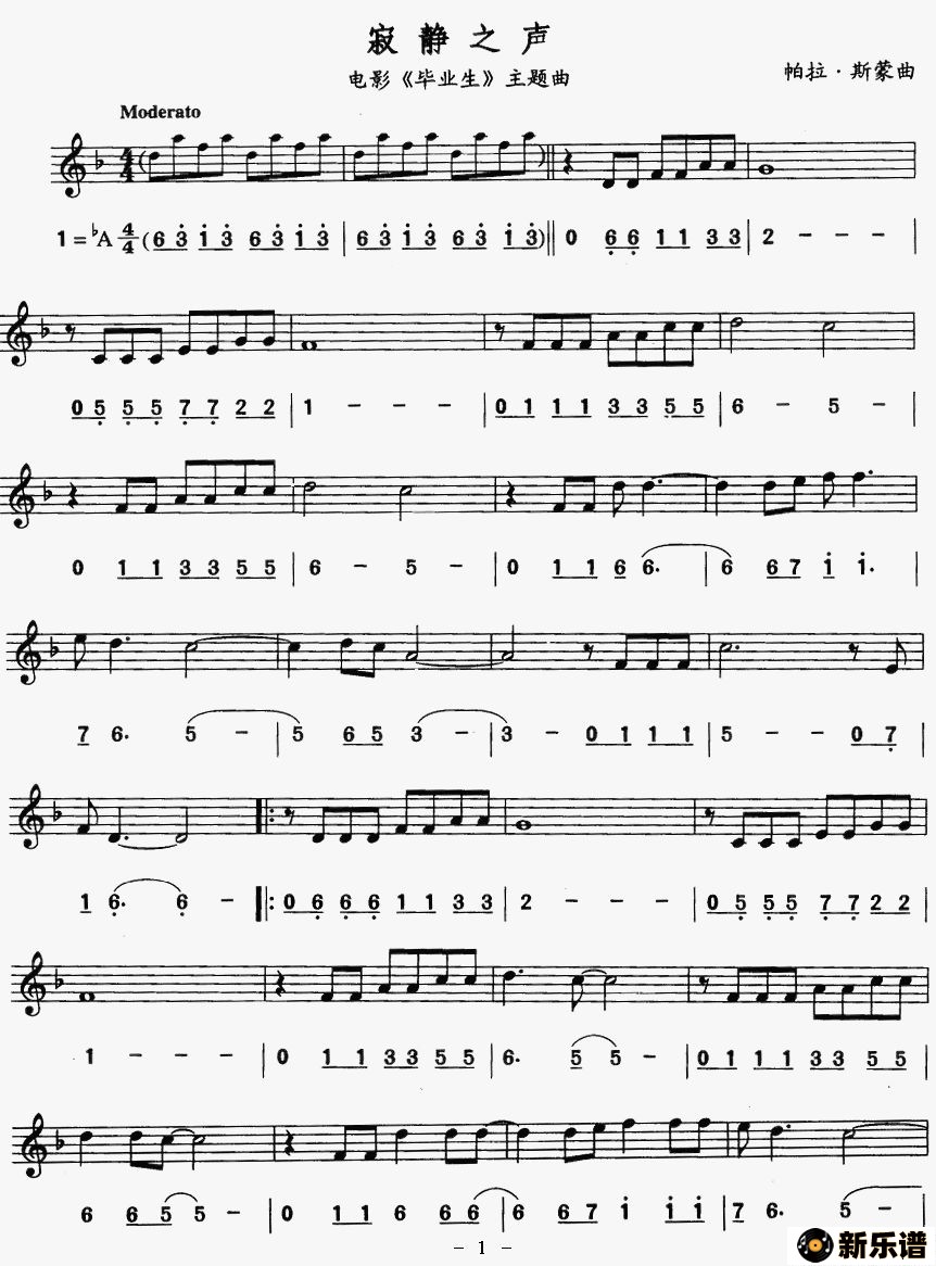 寂静之声(电影《毕业生》主题歌)(线简谱对照版)