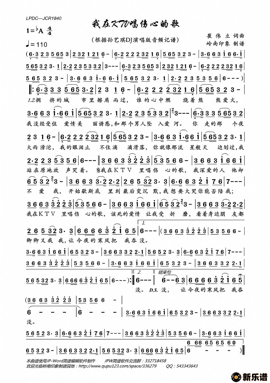 我在ktv唱伤心的歌孙艺琪 孙艺琪演唱的我在ktv唱伤心的歌歌词,我在ktv唱伤心的歌简谱. 拥挤的城市里擦肩而过谁的心中燃烧着熊熊爱火我没经受住爱情美丽诱惑和那个男人坠入爱河你走的那个夜大雨滂沱我的眼泪止不住滴滴滑落你就像那流星般天边划过我站在原地放声哭着我在KTV里唱伤心的歌我深爱的人他却不爱我开始歇斯底里到最后变沉默我想要大哭你能否陪我我在KTV里唱伤心的歌该死的爱情让我受折磨看着身边朋友都卿卿又我我让今夜的寒风把我吞没拥挤的城市里擦肩而过谁的心中燃烧着熊熊爱火我没经受住爱情美丽诱惑和那个男人坠入爱河你走的那个夜大雨滂沱我的眼泪止不住滴滴滑落你就像那流星般天边划过我站在原地放声哭着我在KTV里唱伤心的歌我深爱的人他却不爱我开始歇斯底里到最后变沉默我想要大哭你能否陪我我在KTV里唱伤心的歌该死的爱情让我受折磨看着身边朋友都卿卿又我我让今夜的寒风把我吞没我在KTV里唱伤心的歌我深爱的人他却不爱我开始歇斯底里到最后变沉默我想要大哭你能否陪我我在KTV里唱伤心的歌该死的爱情让我受折磨看着身边朋友都卿卿又我我让今夜的寒风把我吞没让今夜的寒风把我吞没 此简谱由新乐谱会员 岭南印象 上传