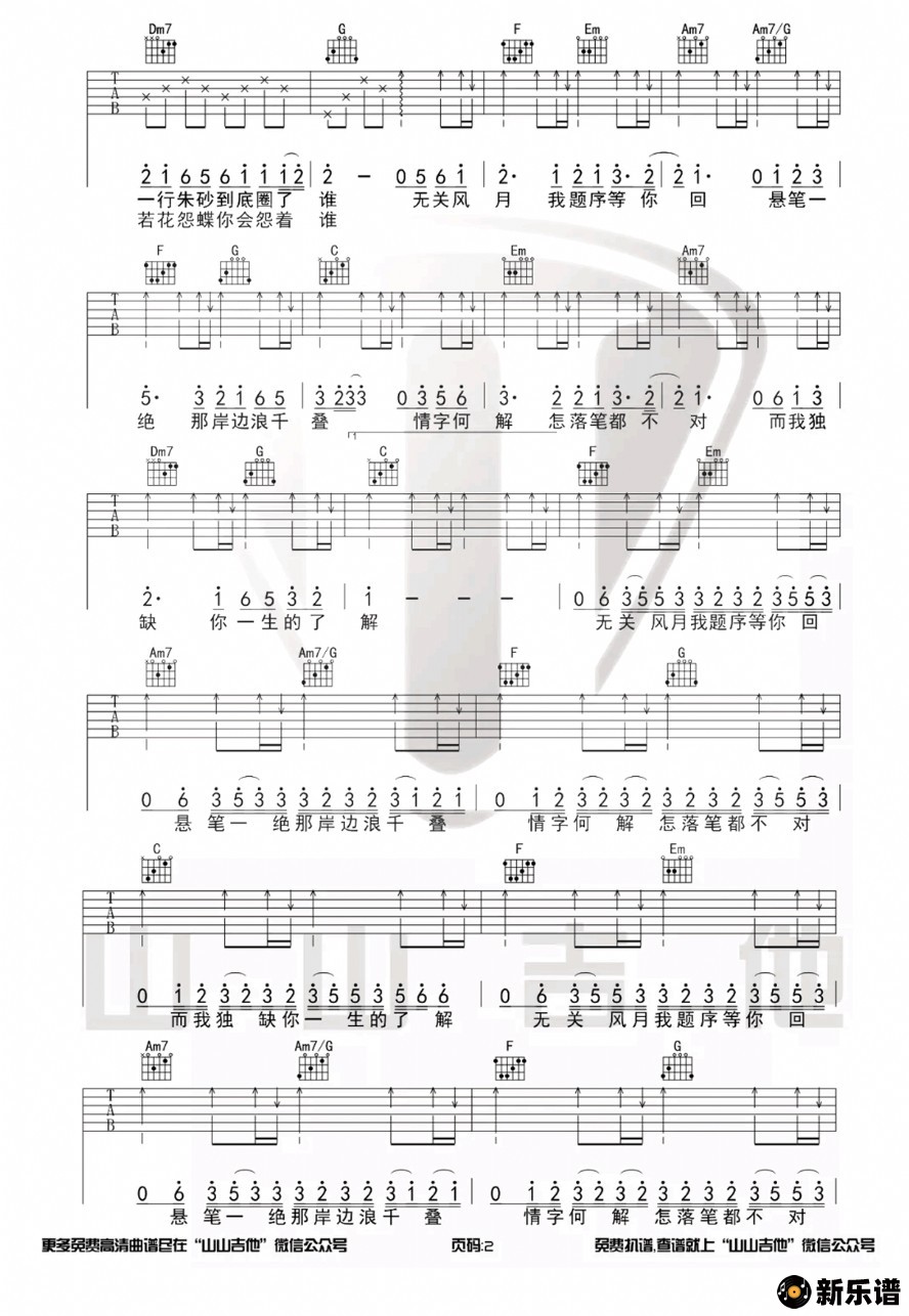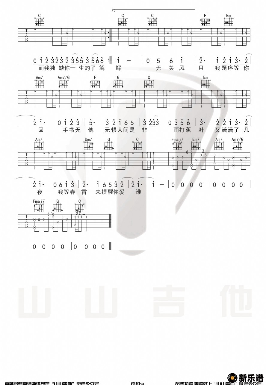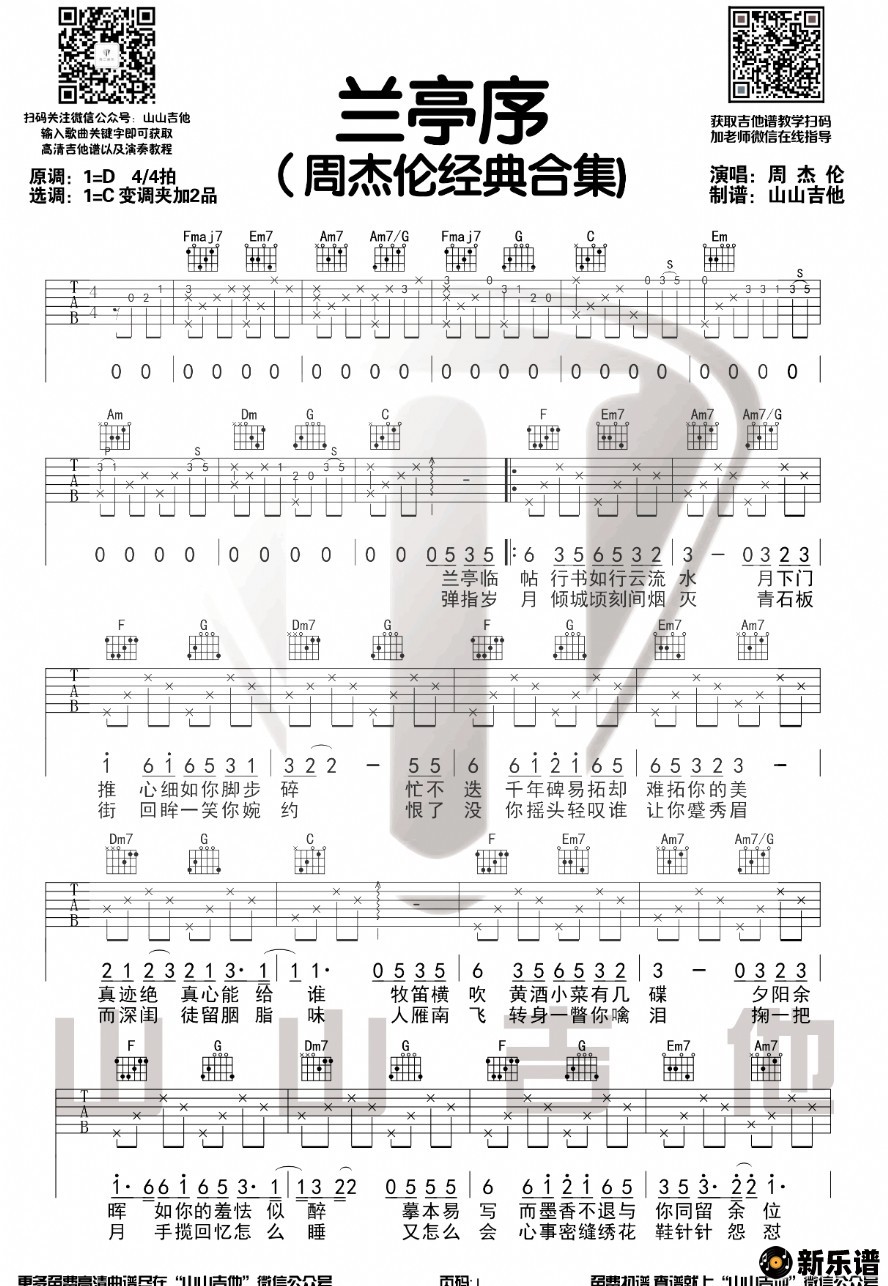 《兰亭序》简谱 周杰伦-山山吉他制谱