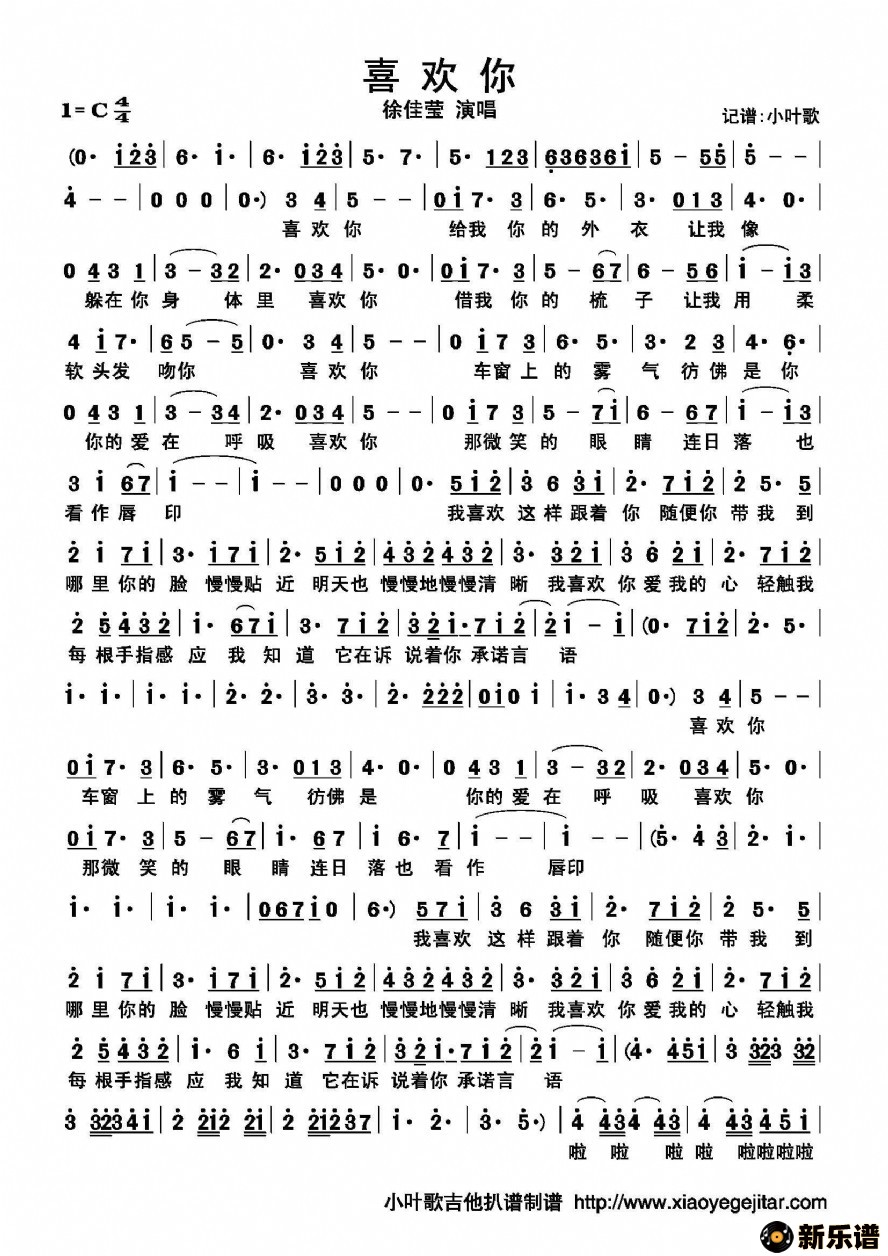 徐佳莹演唱的喜欢你歌词,喜欢你简谱.