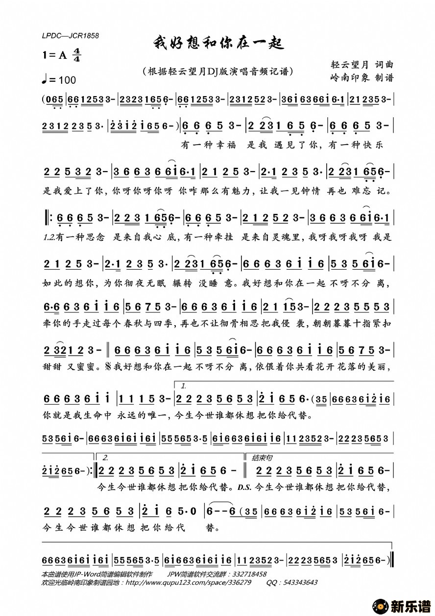 《我好想和你在一起》简谱 轻云望月-岭南印象制谱