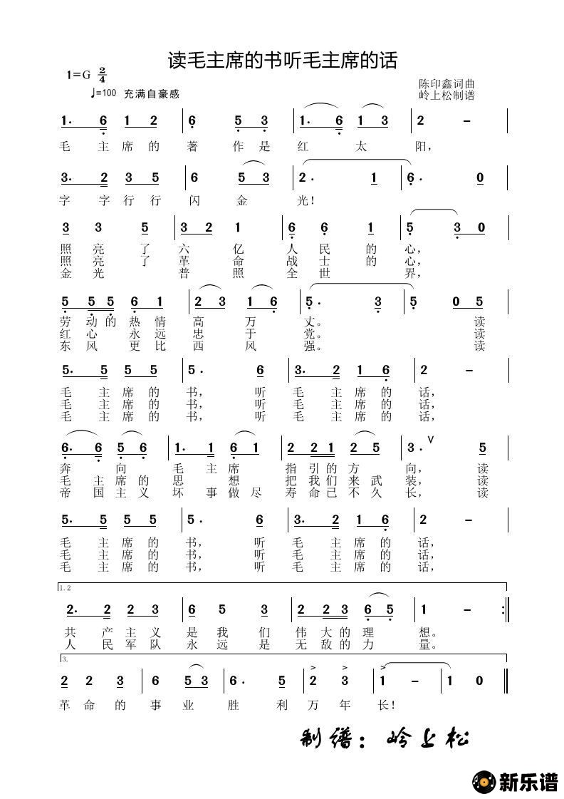 《读毛主席的书听毛主席的话》简谱 -岭上松制谱