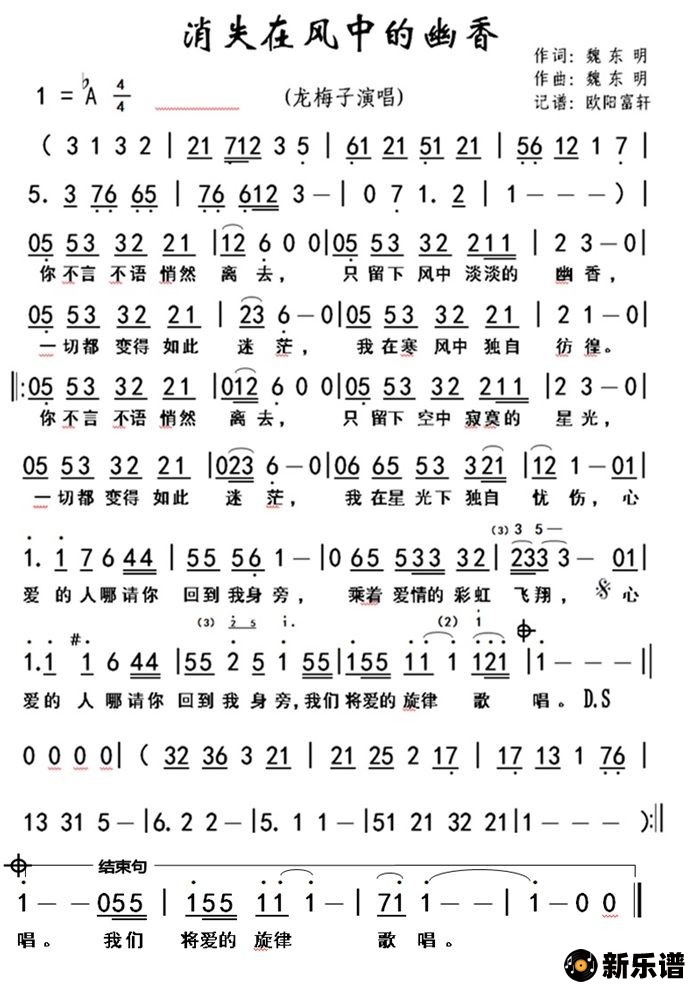 《消失在风中的幽香》简谱 龙梅子