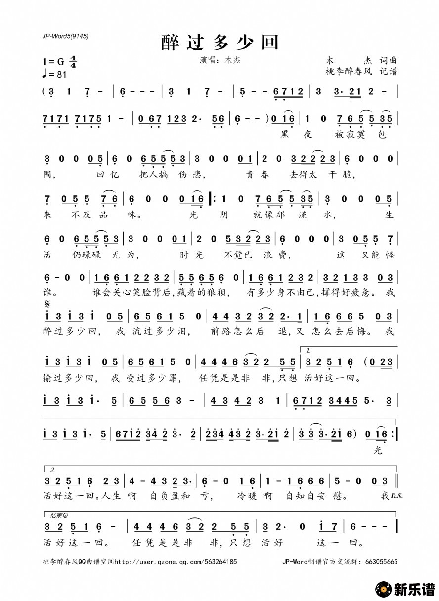 木杰演唱的醉过多少回歌词,醉过多少回简谱.