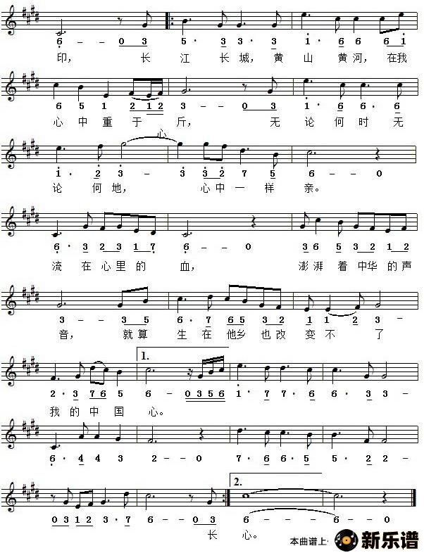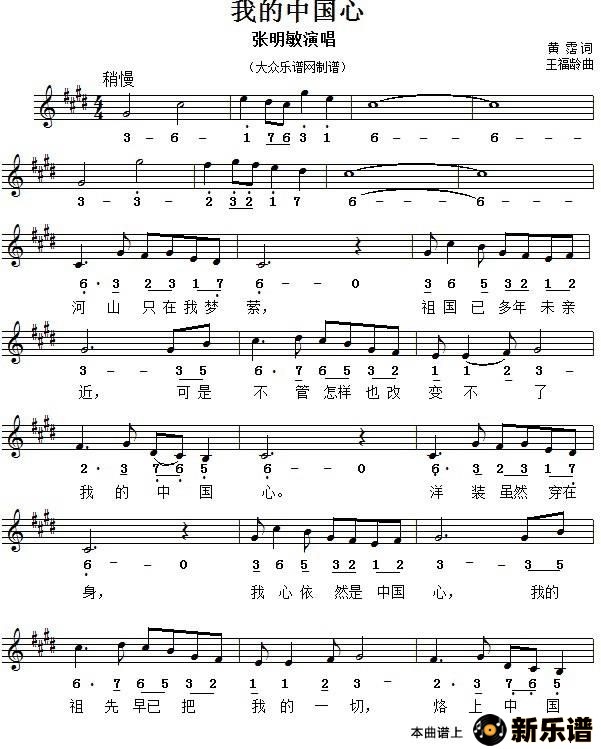 张明敏演唱的我的中国心歌词,我的中国心简谱.
