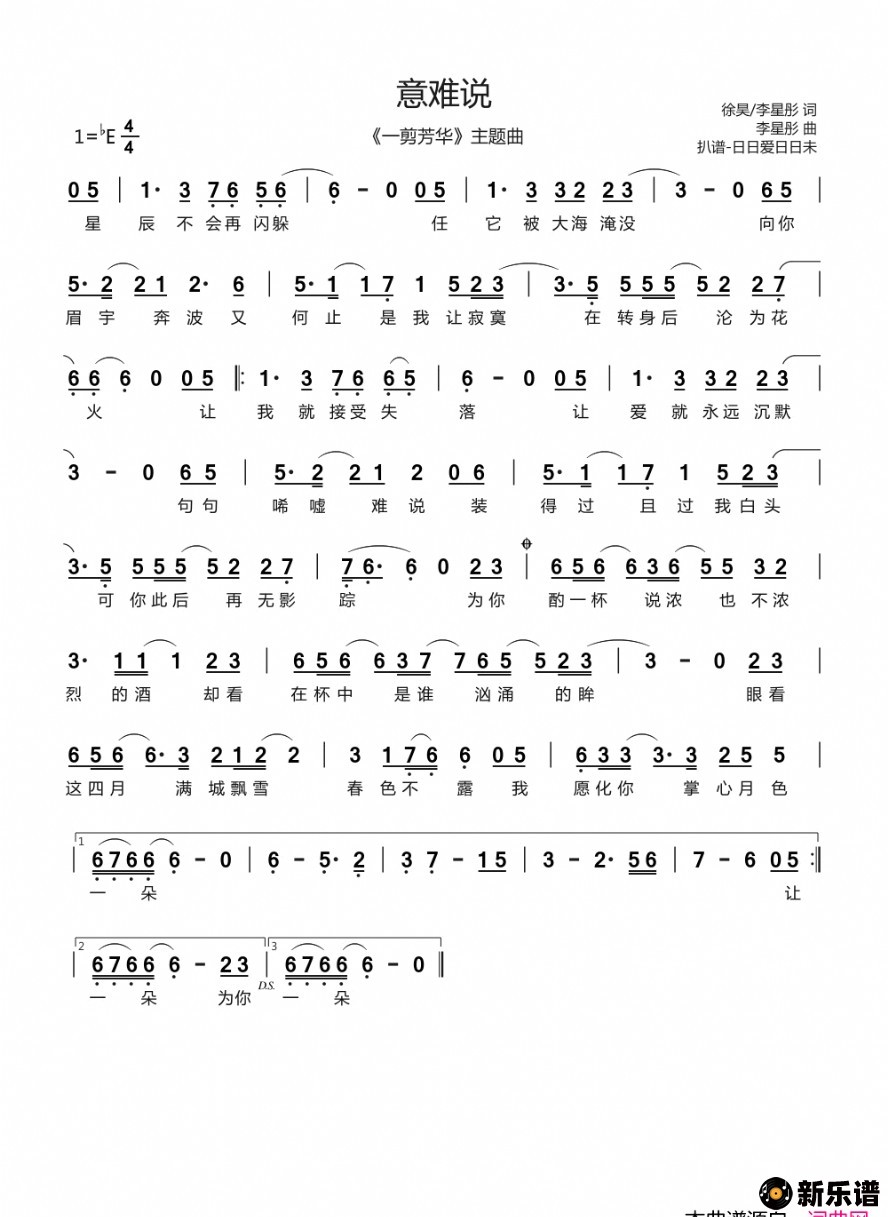 叶炫清演唱的意难说(《一剪芳华》主题曲)歌词,意难说(《一剪芳华》主题曲)简谱.