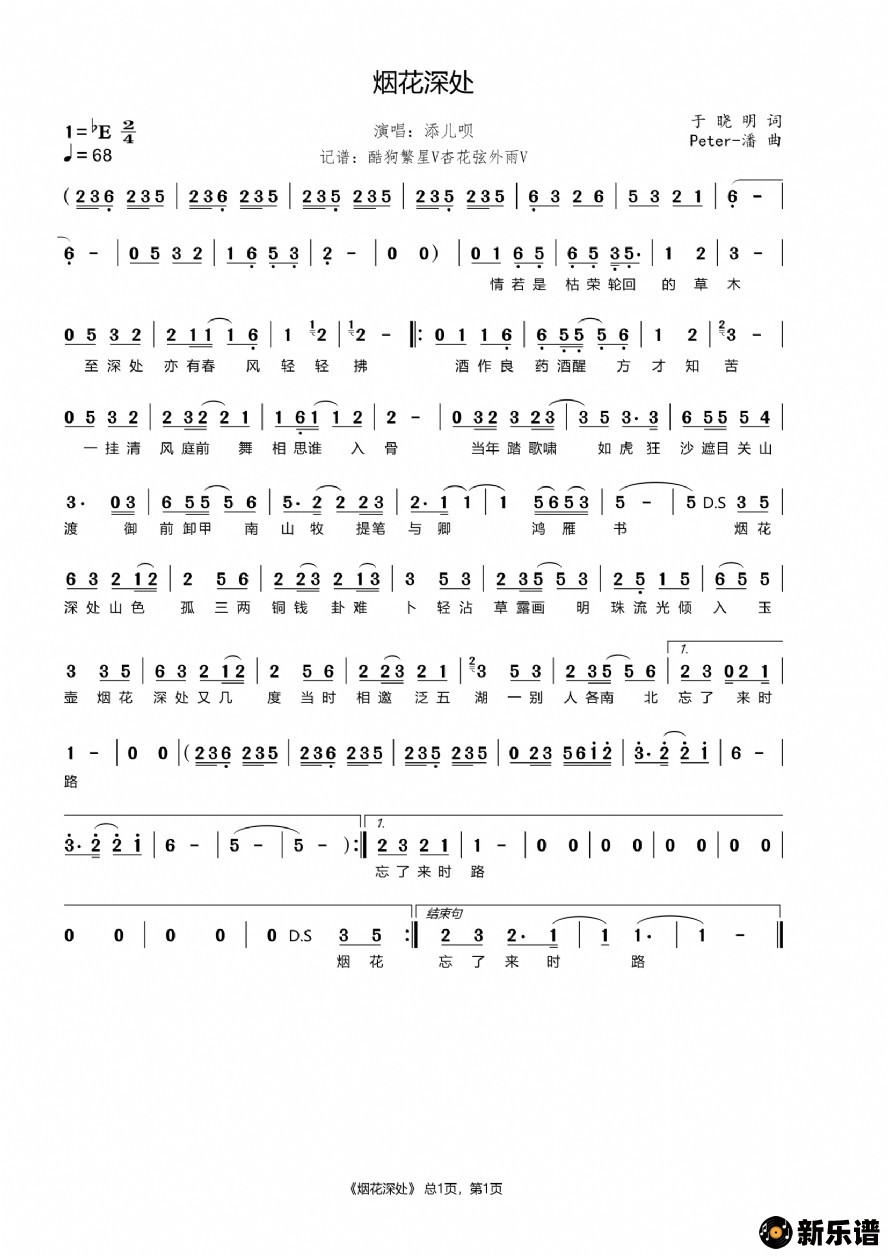 《烟花深处》简谱 添儿呗-杏花弦外雨制谱