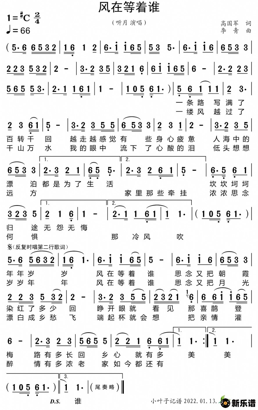 听月演唱的风在等着谁歌词,风在等着谁简谱.