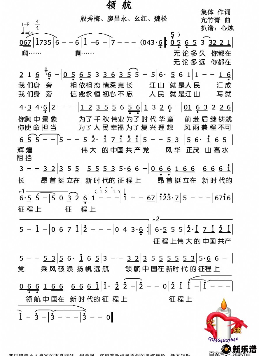 《领航》简谱 殷秀梅、廖昌永、幺红、魏松-心烛制谱