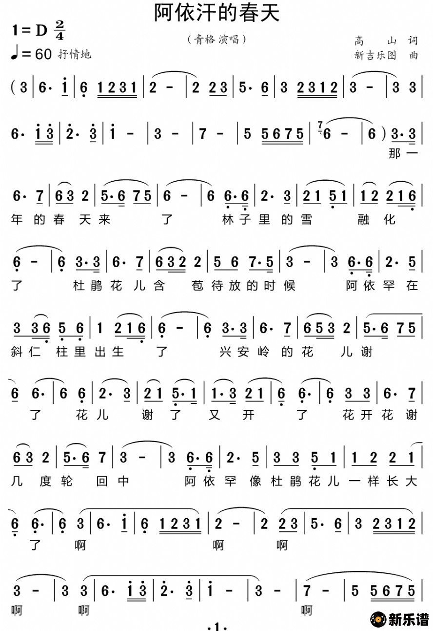 青格演唱的阿依汗的春天歌词,阿依汗的春天简谱.