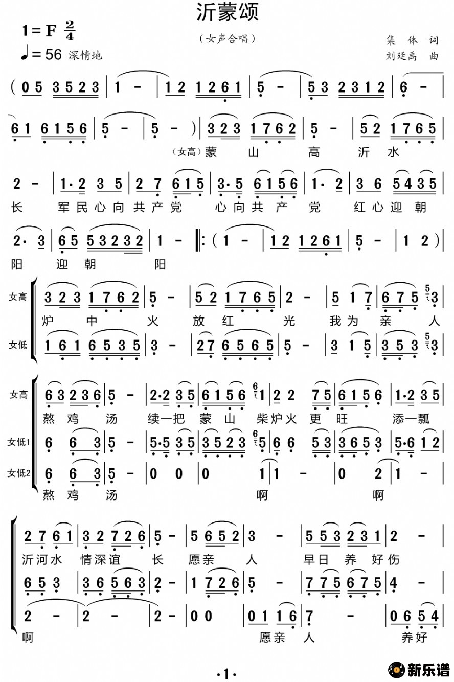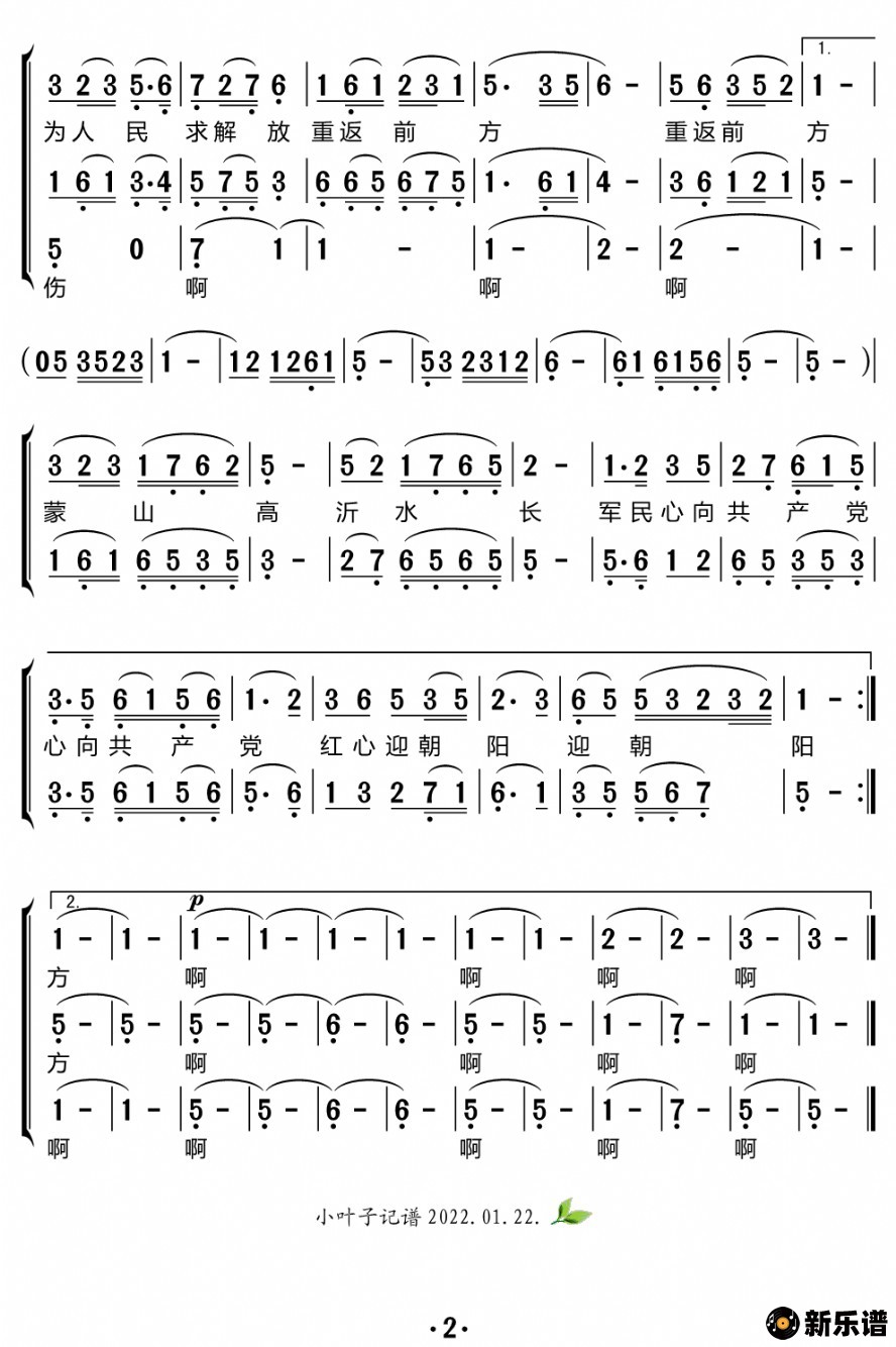 《沂蒙颂(合唱谱)》简谱 黑鸭子组合-小叶子制谱