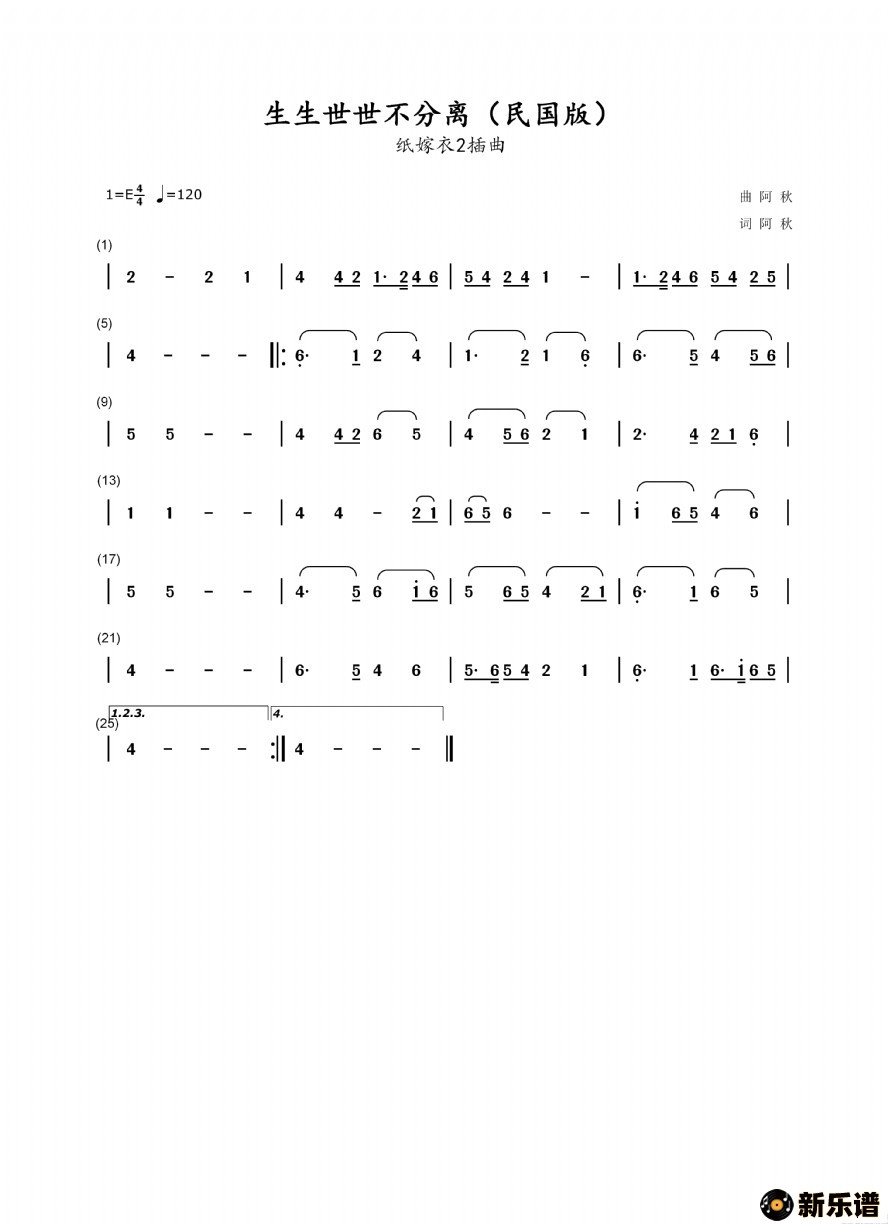 演唱的生生世世不分离歌词,生生世世不分离简谱.