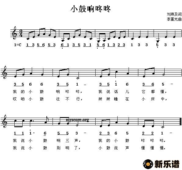 演唱的小鼓响咚咚歌词,小鼓响咚咚简谱.
