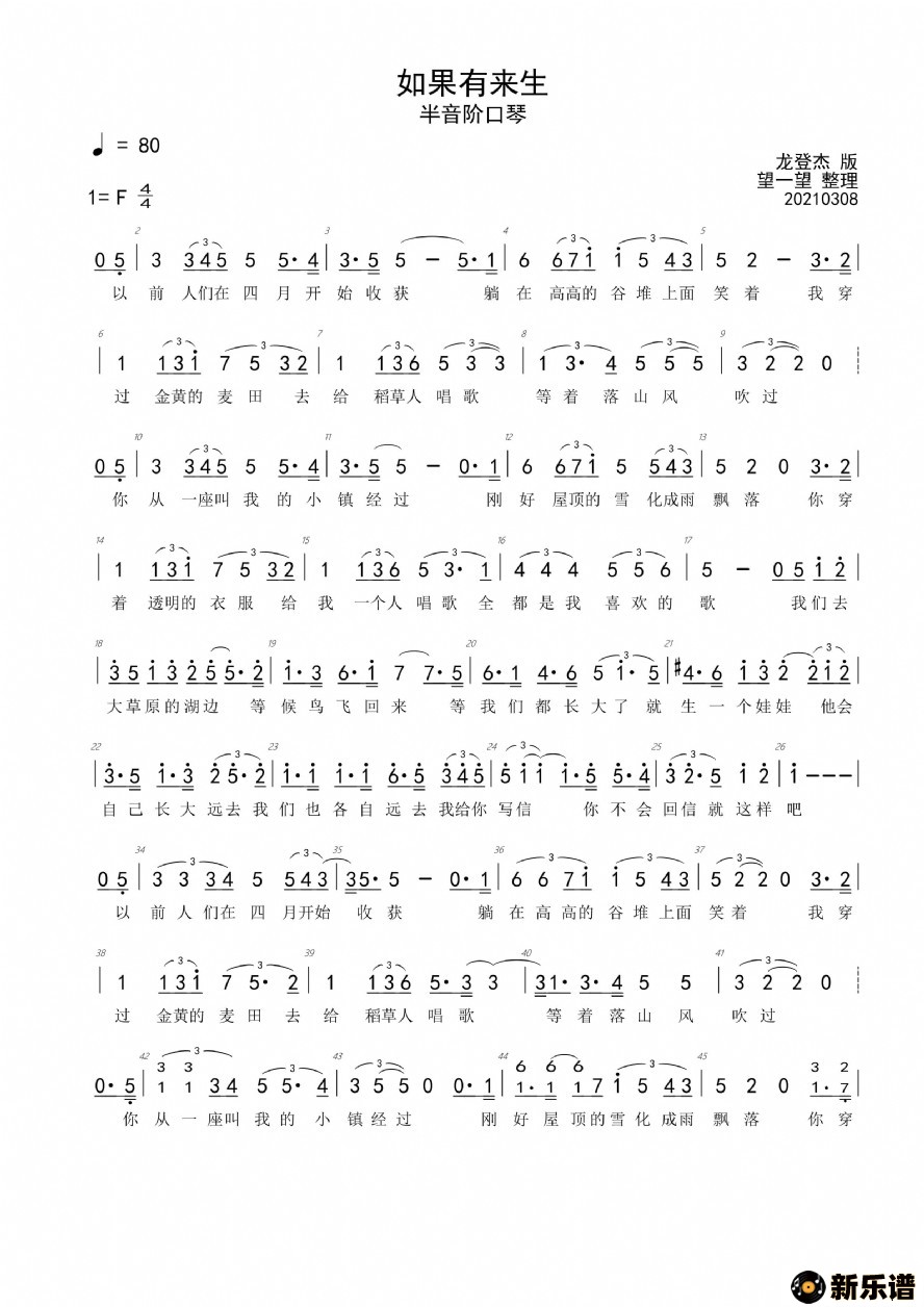 20-7 如果有来生 -f- 首调简谱/龙登杰 相关曲谱
