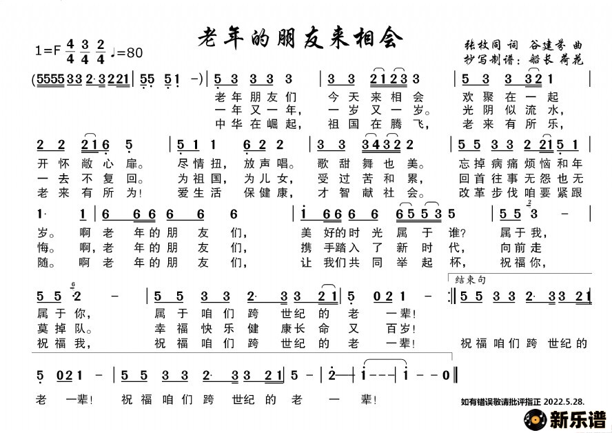 老年朋友来相会最新曲谱