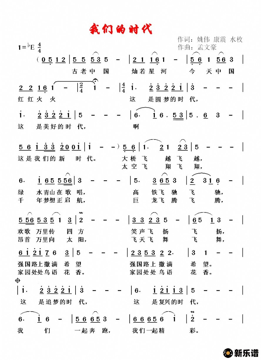 张也/吕继宏演唱的我们的时代歌词,我们的时代简谱.