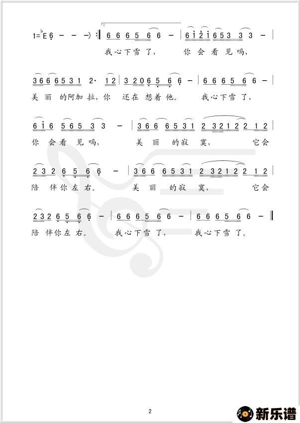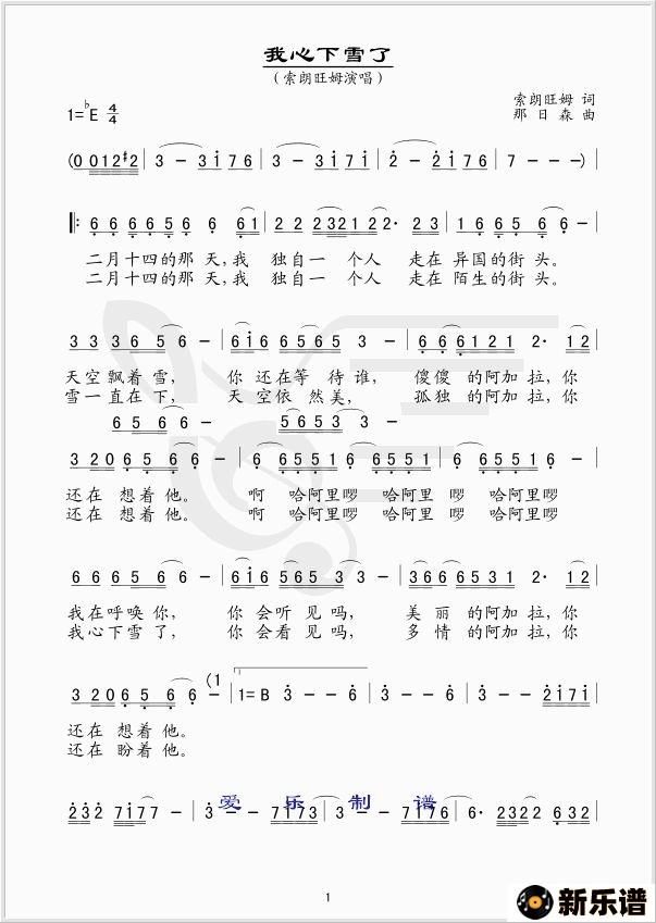 索朗旺姆演唱的我心下雪了歌词,我心下雪了简谱.