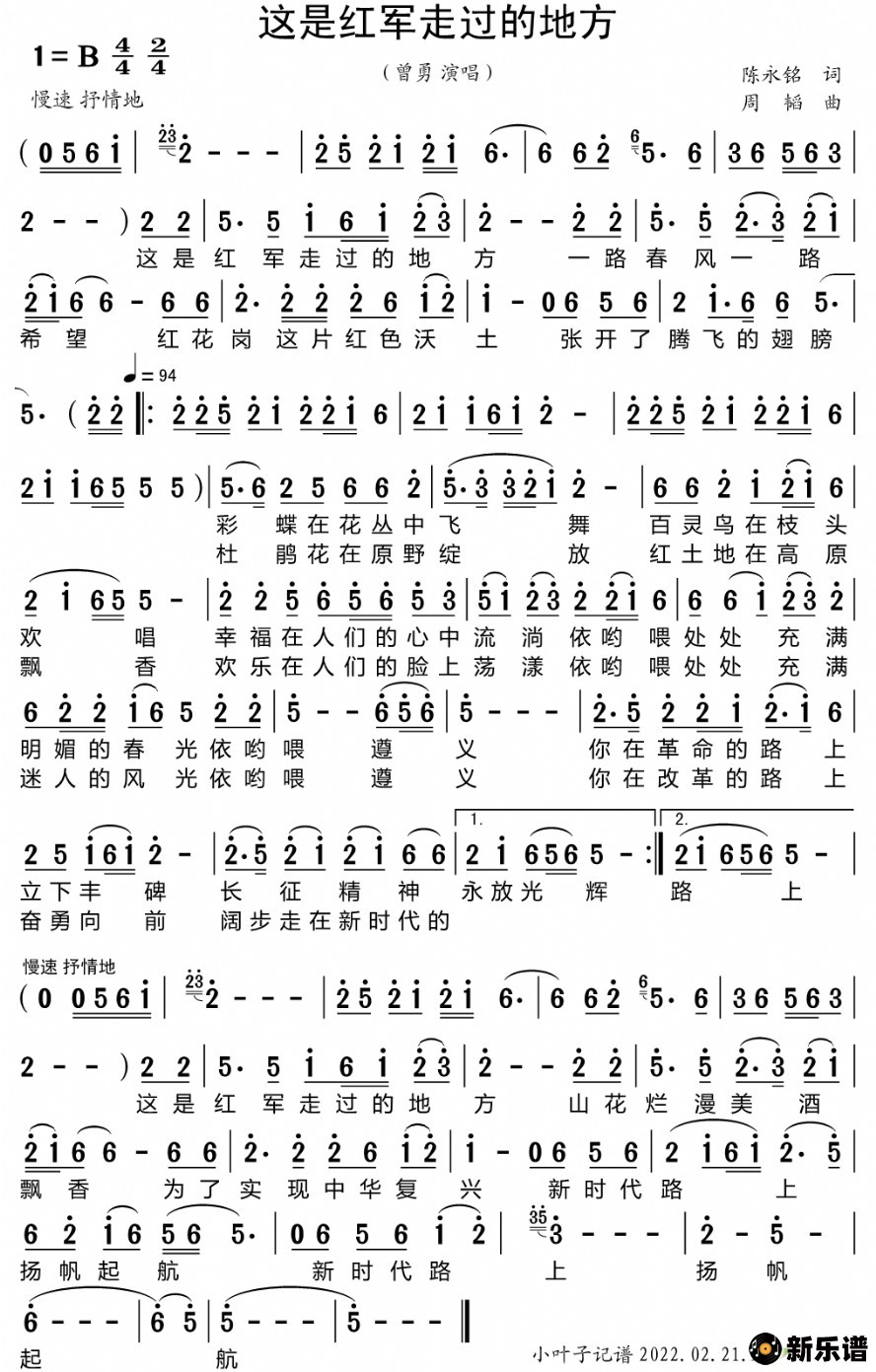 《这是红军走过的地方》简谱 曾勇-小叶子制谱
