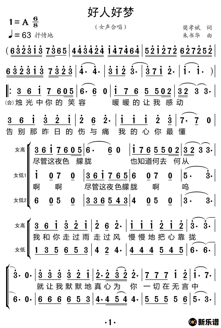 > 好人好梦(合唱谱)简谱