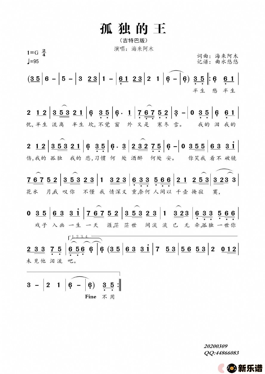 《孤独的王》简谱 海来阿木-曲水悠悠制谱