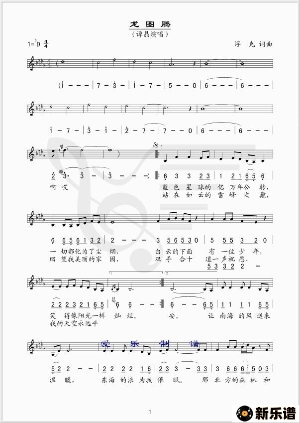 谭晶演唱的龙图腾歌词,龙图腾简谱.